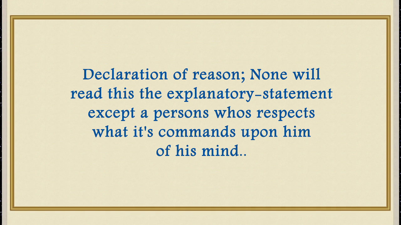 Declaration of reason; None will read this the explanatory-statement except a persons whos respects what it's commands upon him of his mind..
